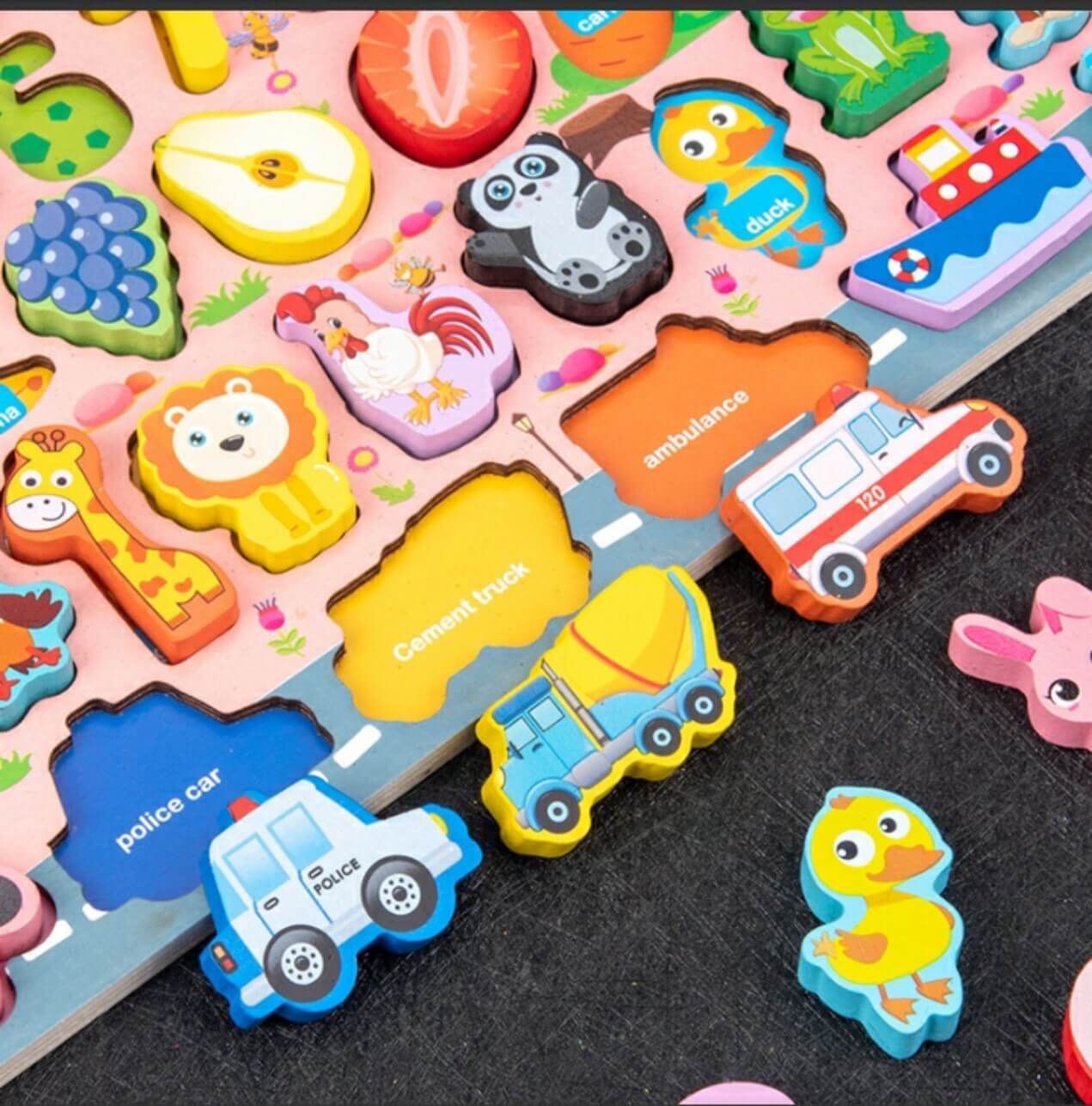 Bảng gỗ câu cá 7 trong 1 đa năng cao cấp loại đẹp (ở trong mỗi ô chữ đều có hình màu sắc bắt mắt)