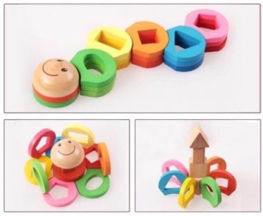 Bao gồm bộ phận đế với 5 loại cọc theo thứ tự 1 đến 5 cọc tương ứng với số lỗ trên hình . Bé sẽ phải quan sát để xiên đúng hình vào cọcDành cho bé từ 2 tuổi trở lên